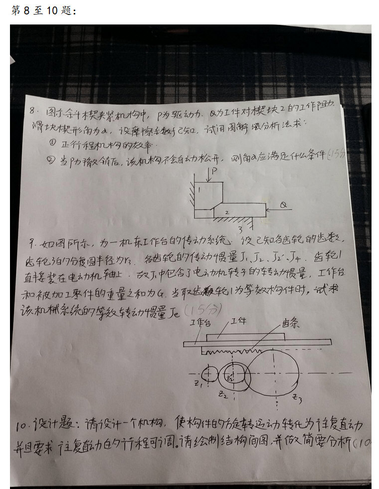 合肥工业大学2016机械原理考研真题手写版(4)
