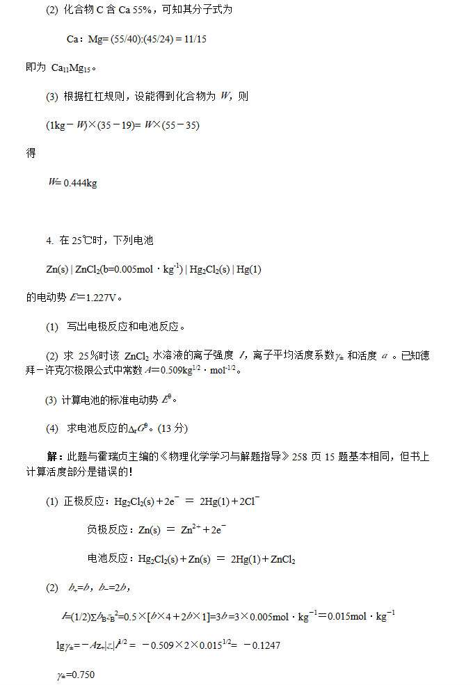 华南理工大学物理化学(二)2001(含答案)考研真题(3)