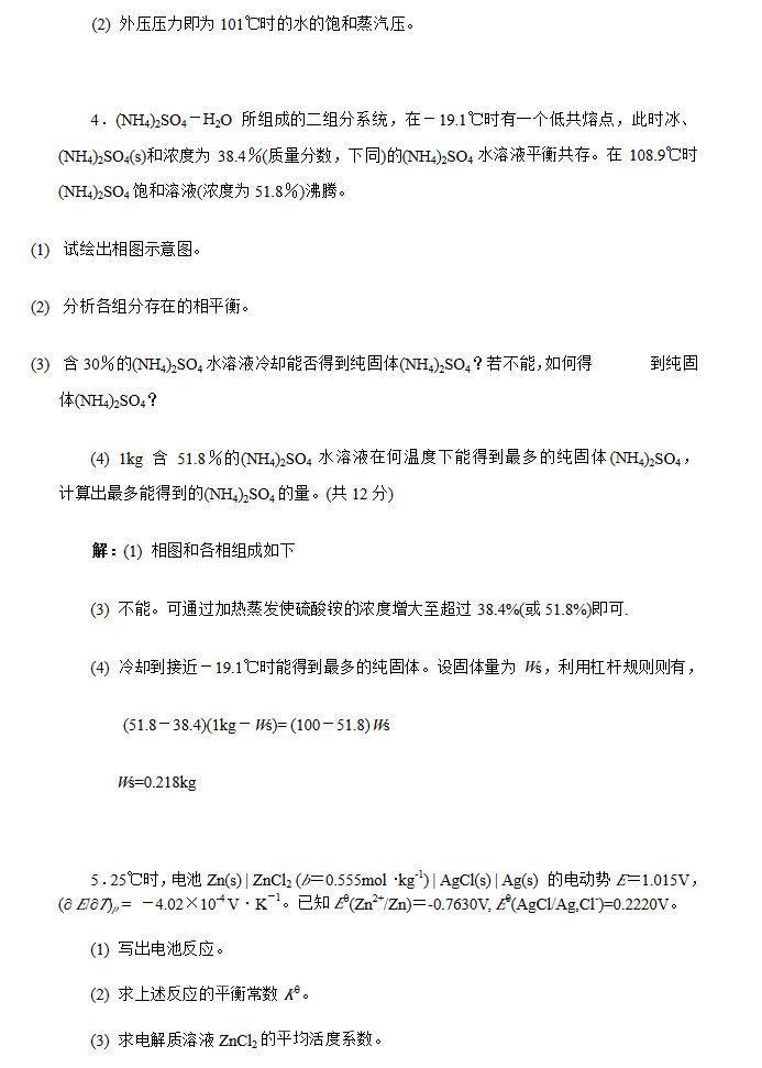 • 华南理工大学物理化学(二)2001(含答案)考研真题