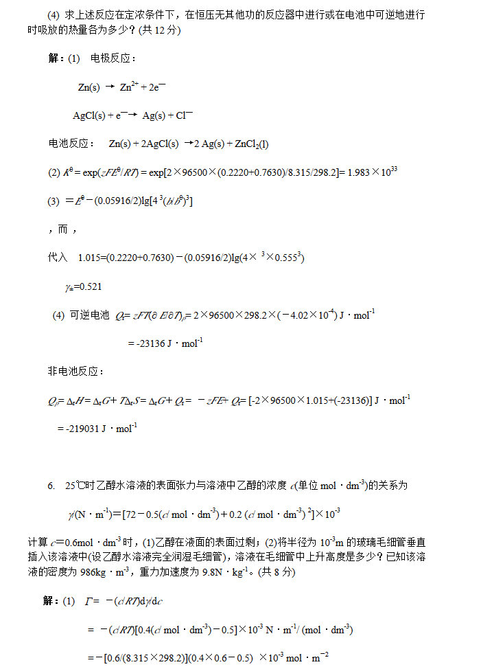 华南理工大学物理化学(二)2002(含答案)考研真题(4)