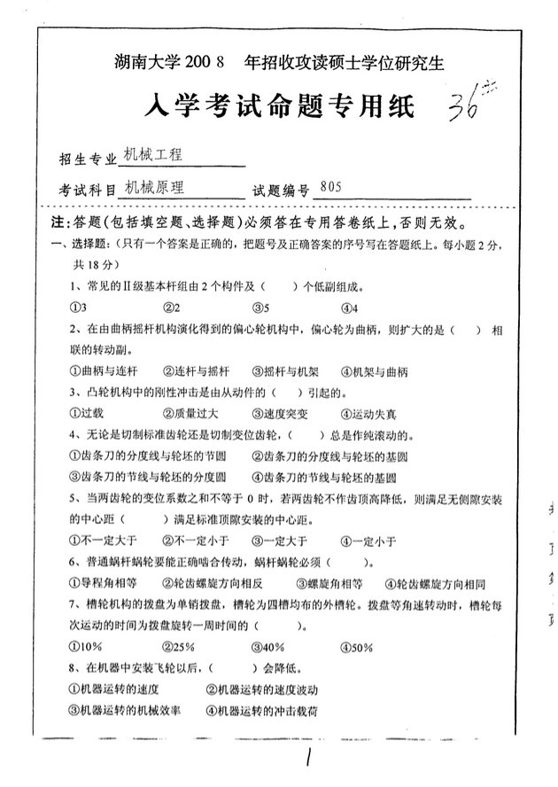 武汉理工大学2014年《机械设计+机械原理》考研模拟试题一