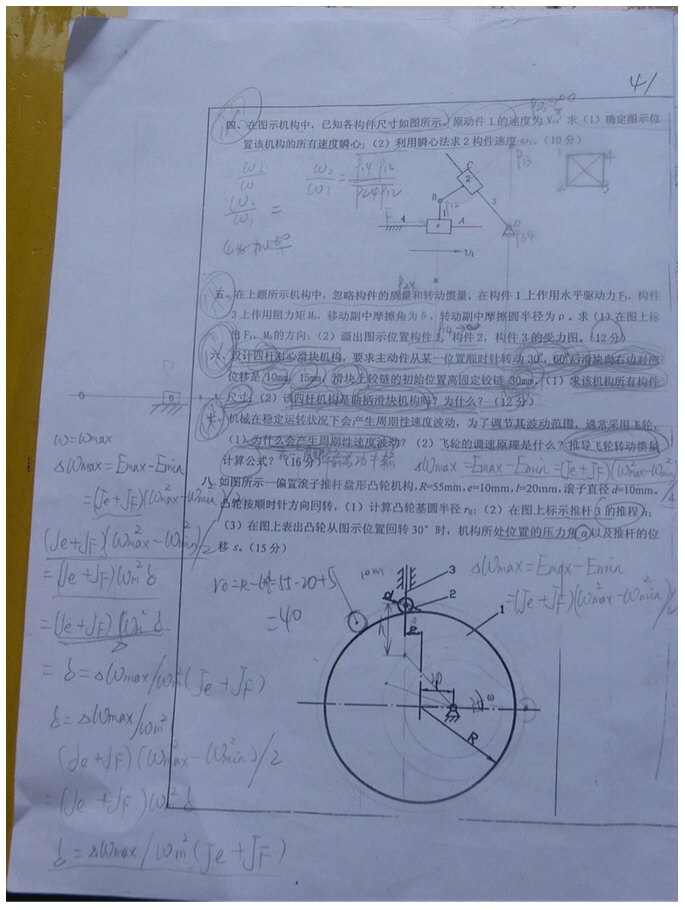 专业课考研资料 本站小编 福瑞考研网 2017-01-11合肥工业大学2016机械原理考研真题手写版