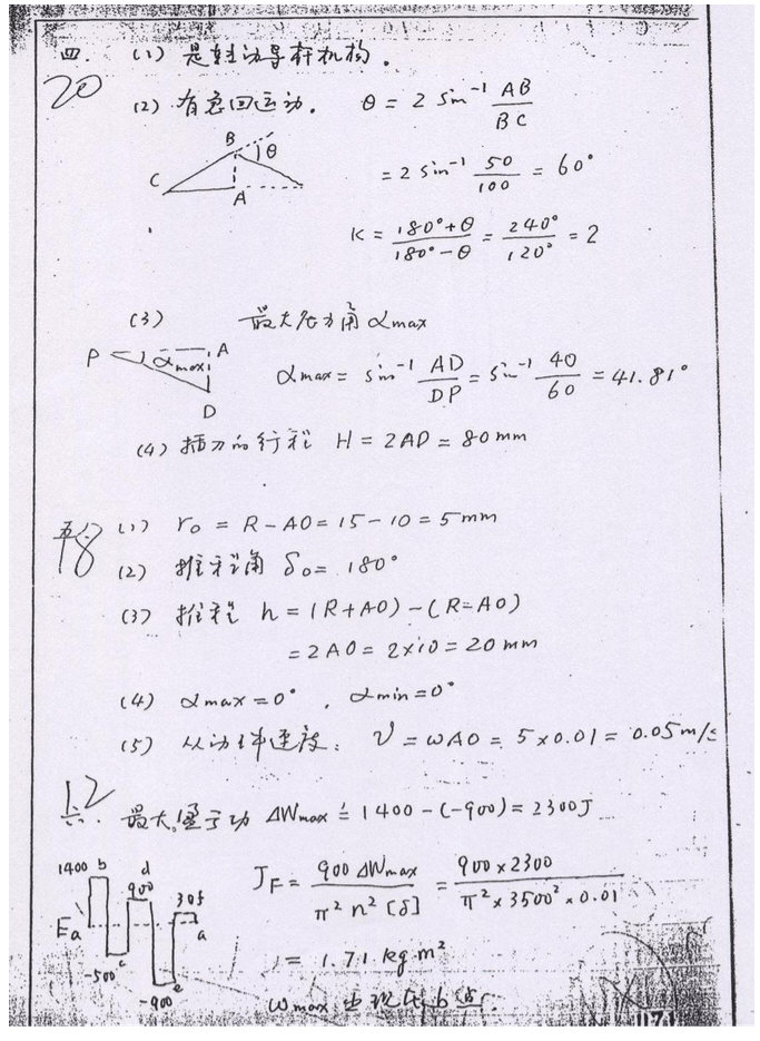 专业课考研资料 本站小编 福瑞考研网 2017-01-11合肥工业大学2016机械原理考研真题手写版