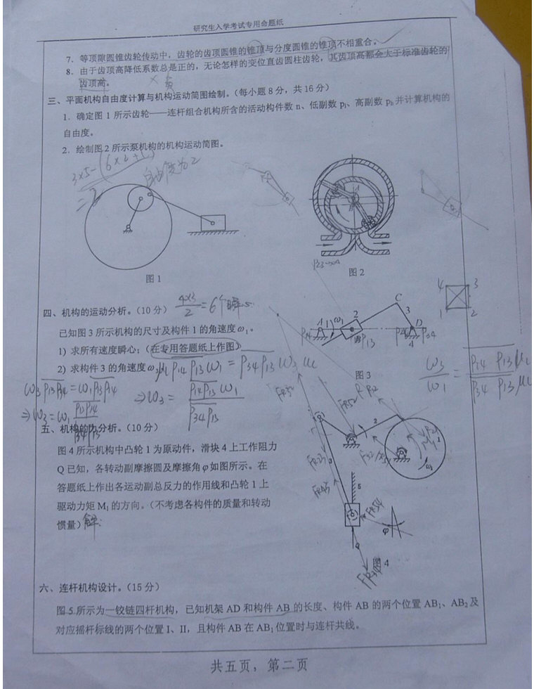 专业课考研资料 本站小编 福瑞考研网 2017-01-11合肥工业大学2016机械原理考研真题手写版