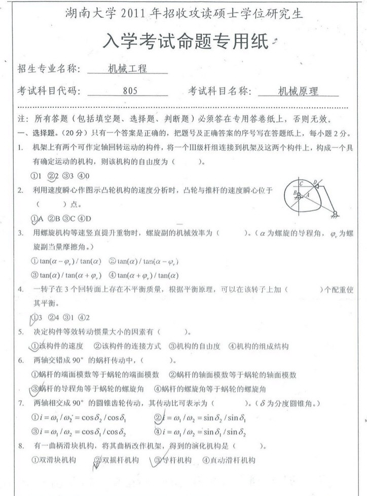 专业课考研资料 本站小编 福瑞考研网 2017-01-11湖南大学2010年机械原理考研真题