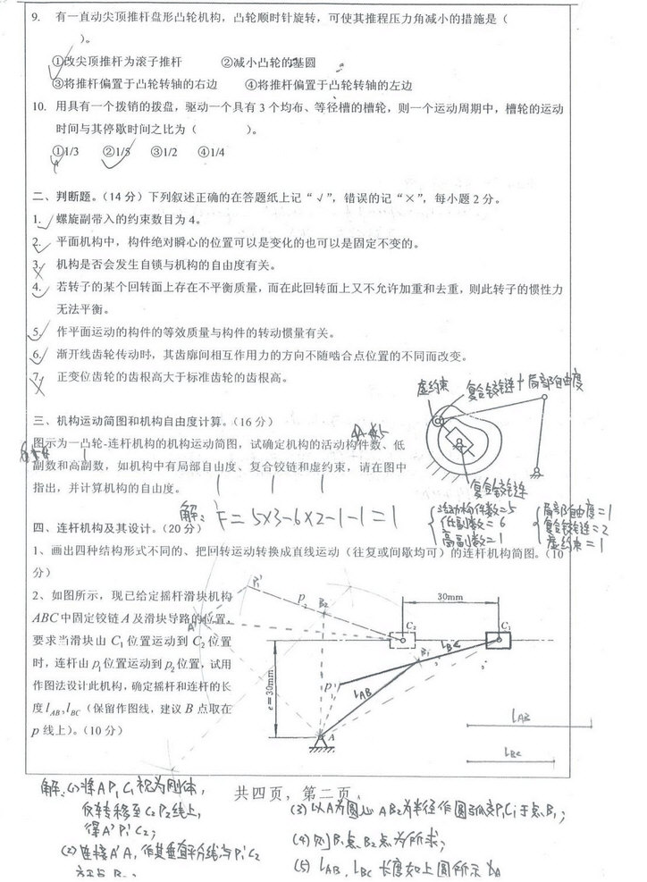 专业课考研资料 本站小编 福瑞考研网 2017-01-11合肥工业大学2016机械原理考研真题手写版