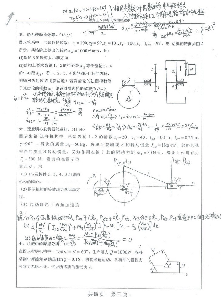 专业课考研资料 本站小编 福瑞考研网 2017-01-11合肥工业大学2016机械原理考研真题手写版