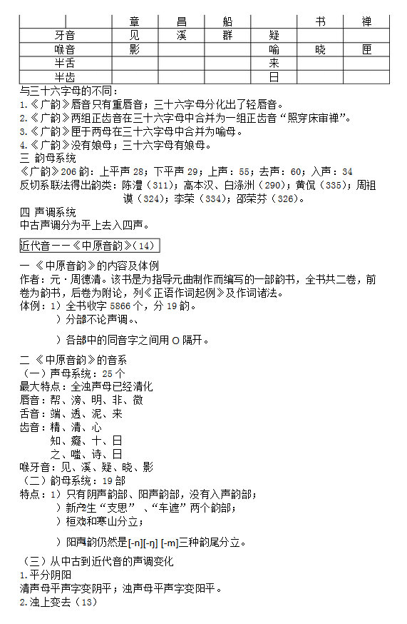 2015年古代汉语考研真题一 名词解释1、韵图音韵学术语。又叫等韵图、等韵表、等韵图表,指的是一种把声、韵、调排列在一起的拼音图表。历史上著名的韵图有《韵镜》、《四声等子》、《七音略》等。2、浊音轻化音韵学术语。指从中古到近代、现代,除了次浊声母[m、n、l]和一部分[] [] 外,所 ...