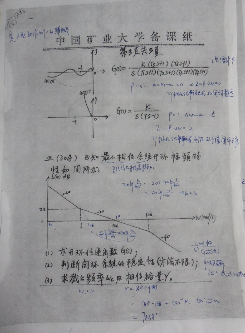 中国矿业大学2006-2009年自动控制原理考研复试题答案参考(3)
