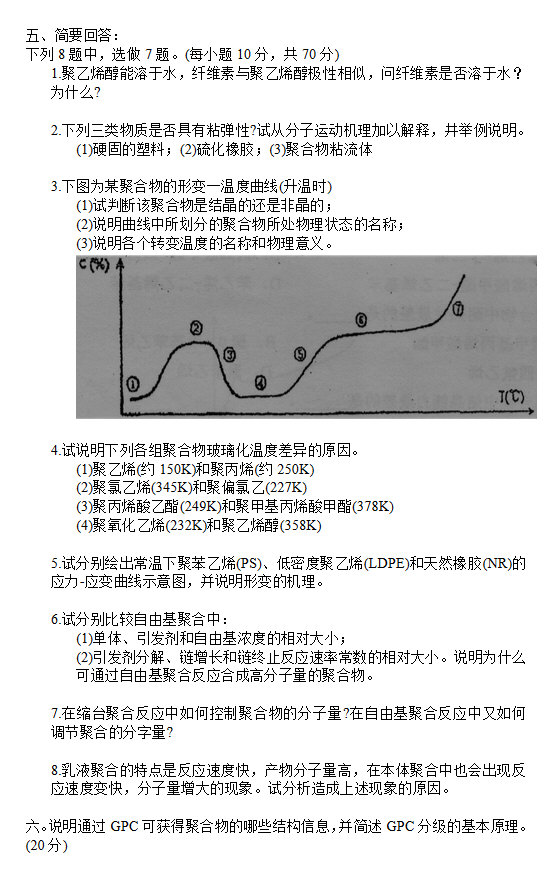• 2005年四川大学高分子化学与物理考研试卷