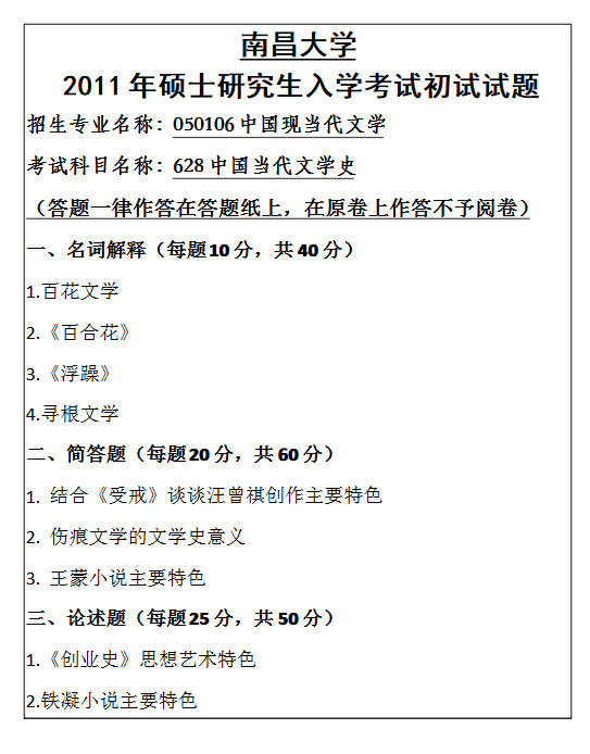 南昌大学628中国当代文学史历年考研真题汇编(2)