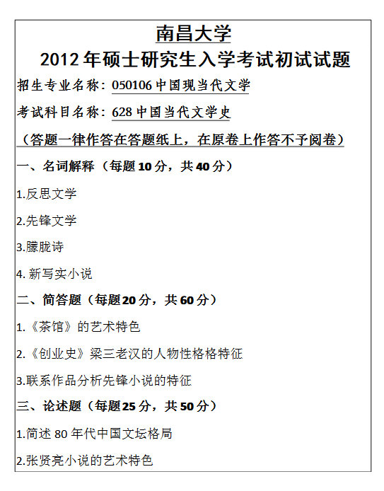 南昌大学628中国当代文学史历年考研真题汇编(3)