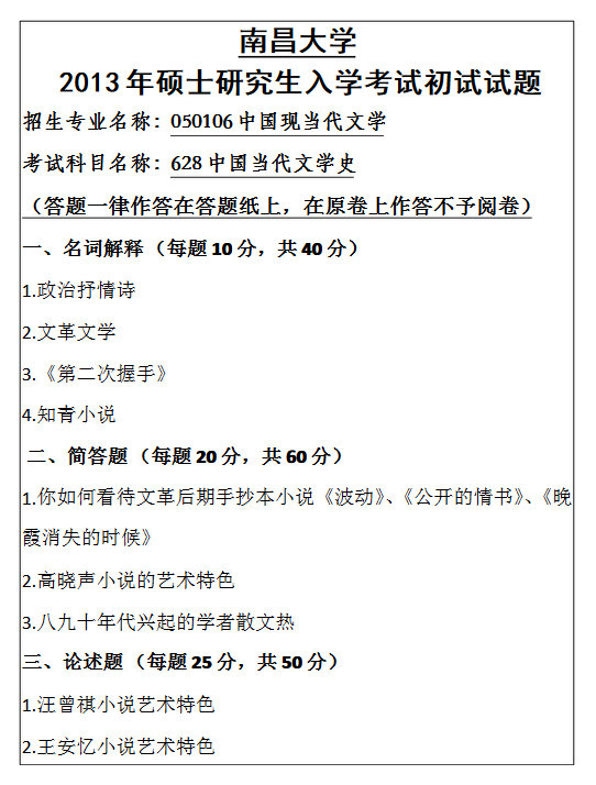 南昌大学628中国当代文学史历年考研真题汇编(4)