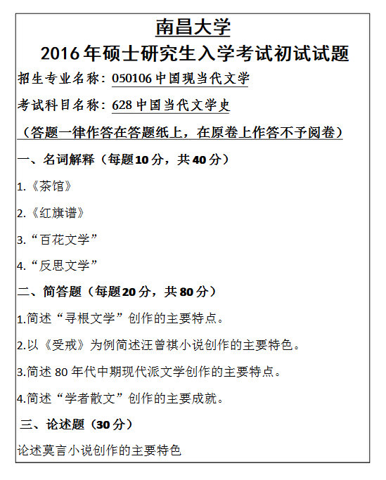 南昌大学628中国当代文学史历年考研真题汇编(7)