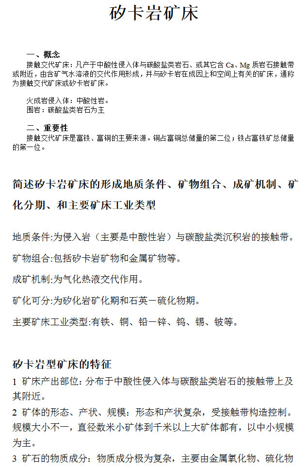 2015 名词解释(85) 1.矿床,矿体 2.品位与边界品 3.SEDEX VMS 4.机械沉积分异 5.后生矿床 6.玢岩铁矿 8.次生硫化物富集作用 简答(510) 1.矿质从从流体中沉淀的条件 2.变质成矿作用的类型 3.伟晶岩矿床的带状构造 4.铅锌矿床的类型 5.盐类矿床的特征 论述(320) 1.早晚岩浆矿床与 ...