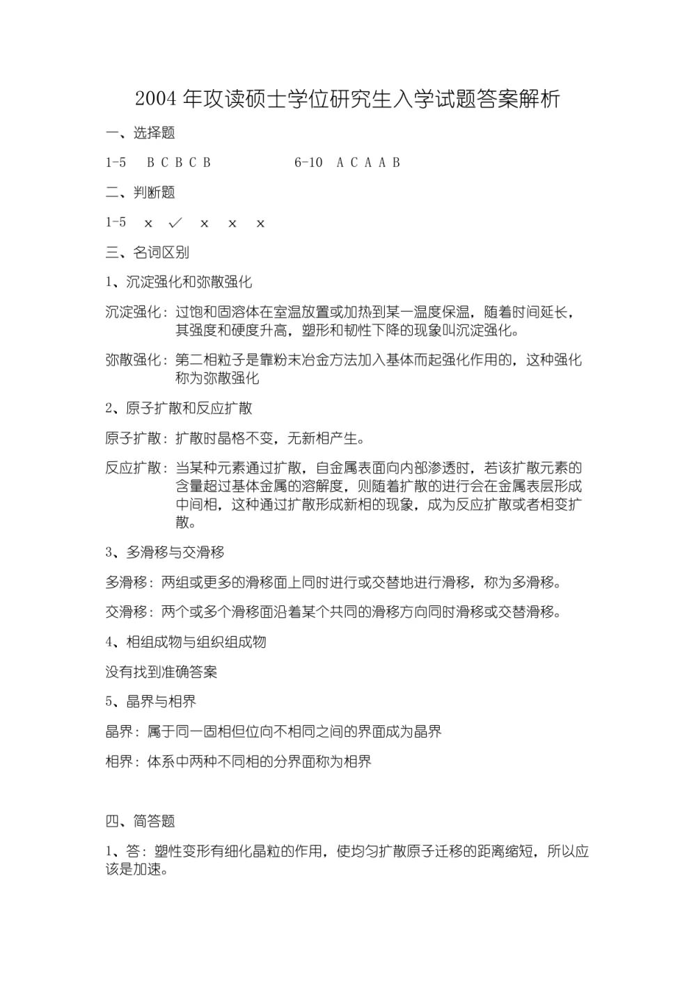 郑州大学-金属材料学-考研真题答案2003-2008(有错需改)(10)
