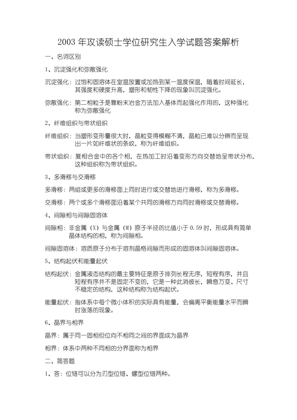 郑州大学-金属材料学-考研真题答案2003-2008(有错需改)(3)
