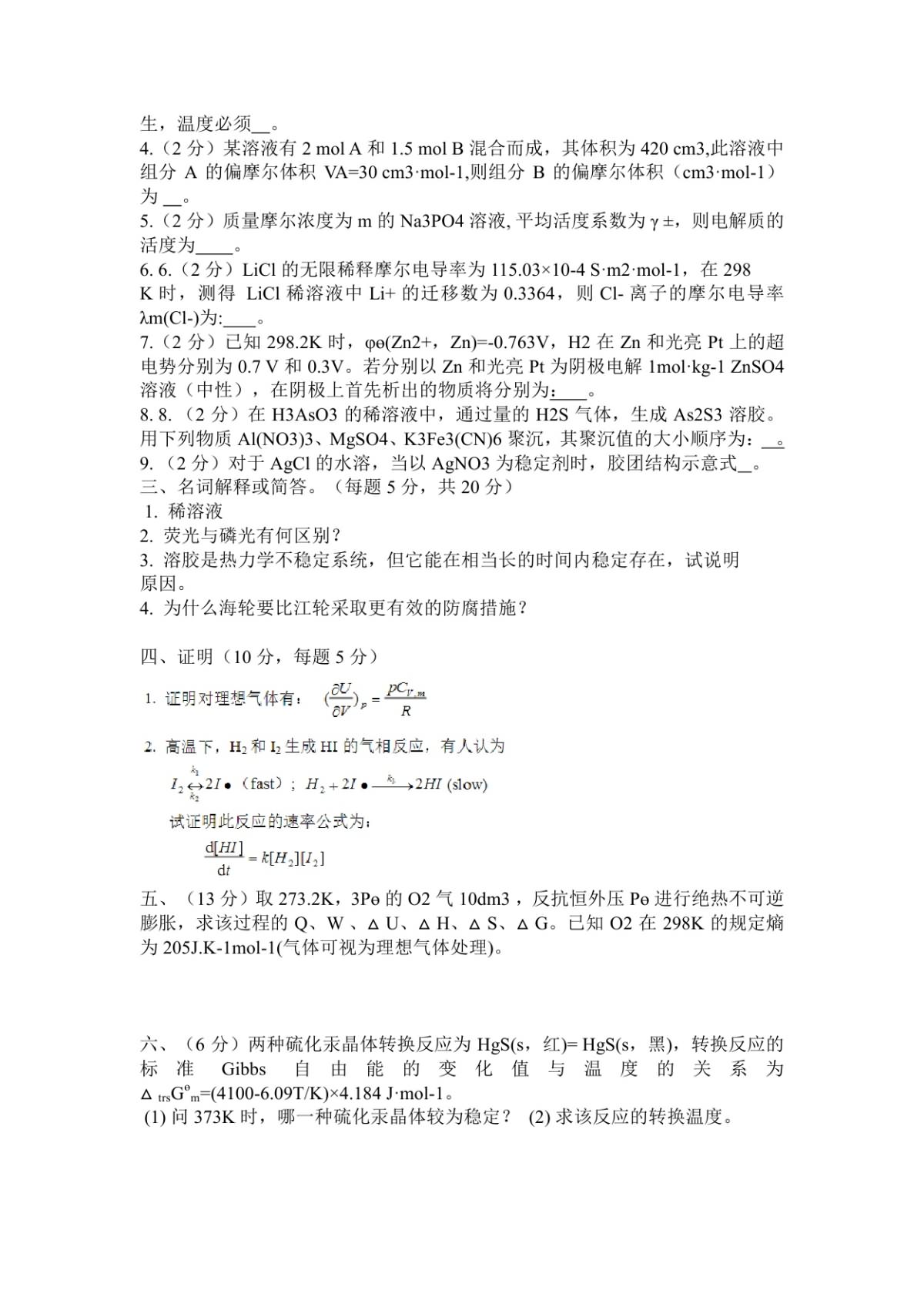 2013-2015西北大学826物理化学考研真题(3)