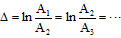 扭摆法中通常用更直接的参数“对数减量Δ”来表征力学内耗。Δ定义为两个相继振动的振幅的比值的自然对数,