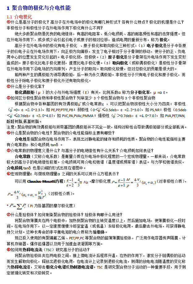 高分子物理考研习题整理09 聚合物的电学性能