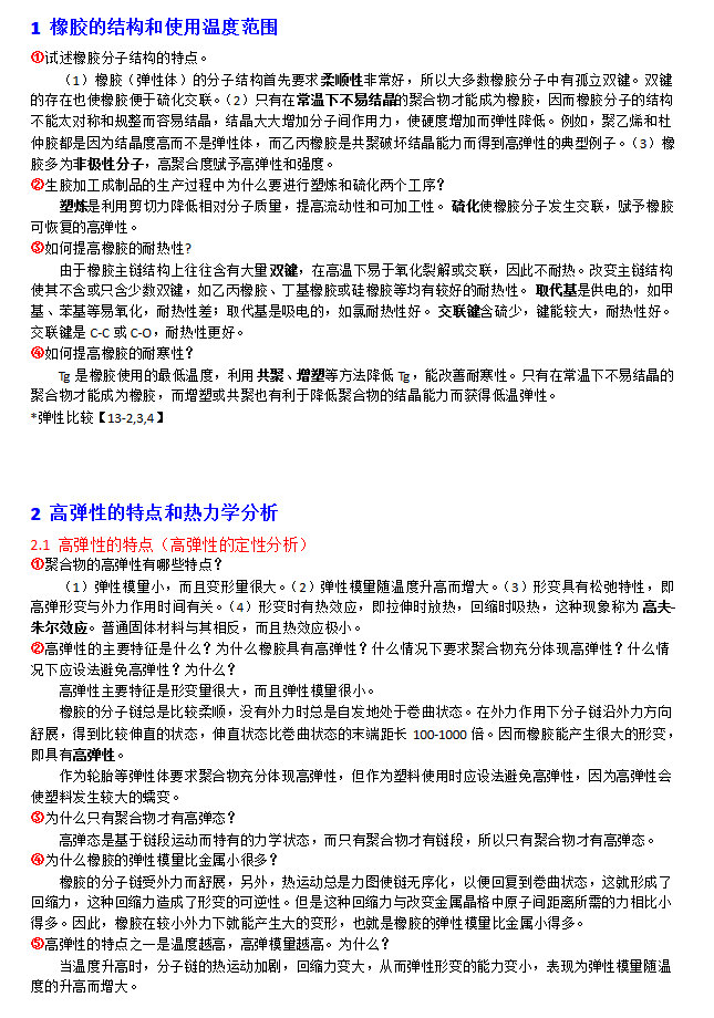 高分子物理考研习题整理06 橡胶弹性
