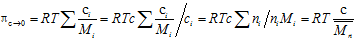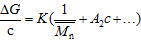 ,以π/c对c作图,可得一条直线,由截距可求M,由斜率可求A2。A2是高分子间以及高分子与溶剂间相互作用力大小的一种度量。对于良溶剂,A2>0,此时高分子线团舒展;对于不良溶剂,A2<0,此时高分子线团紧缩(发生沉淀);A2=0为临界状态,称为θ状态。