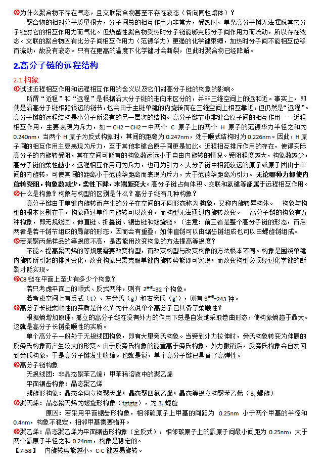 • 高分子物理考研习题整理02 高分子的聚集态结构