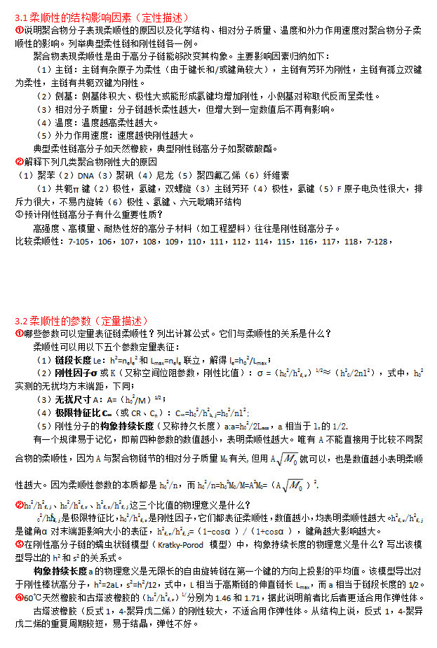 专业课考研资料 本站小编 福瑞考研网 2017-04-09 1 黏弹性现象1.1 黏弹性与松弛①什么是聚合物的力学松弛现象?什么是松弛(弛豫)时间? 聚合物的力学性质随时间变化的现象称为力学松弛现象。在一定的外力和温度下,聚合物受外力场作用的瞬间开始,经过一系列非平衡态(中间状态)而过渡到与外力性质相适应的平衡态(终态)所需要的时间称为松弛时间,这个时间通常不是 ...