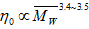 其影响程度是不同的。在零切粘度η0与重均相对分子质量MW的关系中,