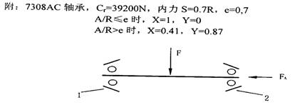 同理FA2/FR2>e, ∴P2=fp(XFR2+YFA2)=1.2(0.41×3000+0.87×7350)=9149.4N
