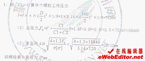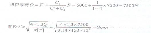 【分析】该题主要考察单个螺栓的受力分析,以及依据强度计算,求螺栓的最小直径。考察到多次,不在强调。