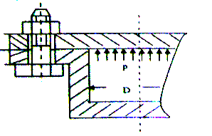 1.图示为一液压油缸,油缸内径为D=160mm,油压为p=3N/mm2沿油缸圆周均匀分布八卦螺栓,螺栓材料许用压力[σ]=120Mpa,螺栓的相对刚度C1/(c1+c2)=0.9,预紧力F´=1.6F(F为轴向工作载荷),求所需螺栓的最小直径。
