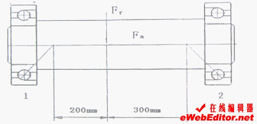 2.有一轴部件,其轴承为向心角轴承,安装方式和尺寸关系如图所示,已知Fr=1000N,Fa=100N,轴承内部轴向力Fs=0.7FR,径向动载荷系数及轴向动载荷系数分别为X=0.5,Y=1。轴承的基本额定动载荷C=11.2KN.温度系数ft=1,载荷系数fp=1,试求当量动载荷及轴承的基本额定寿命。