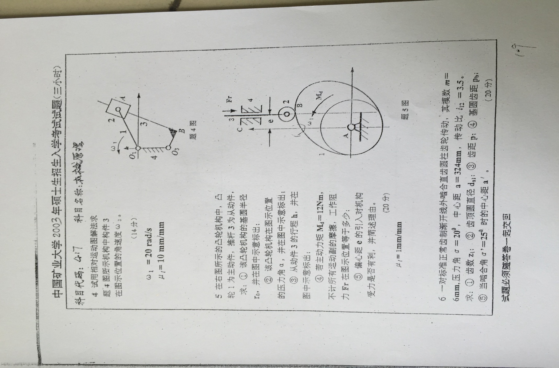 中国矿业大学2003-2007机械原理考研真题(3)