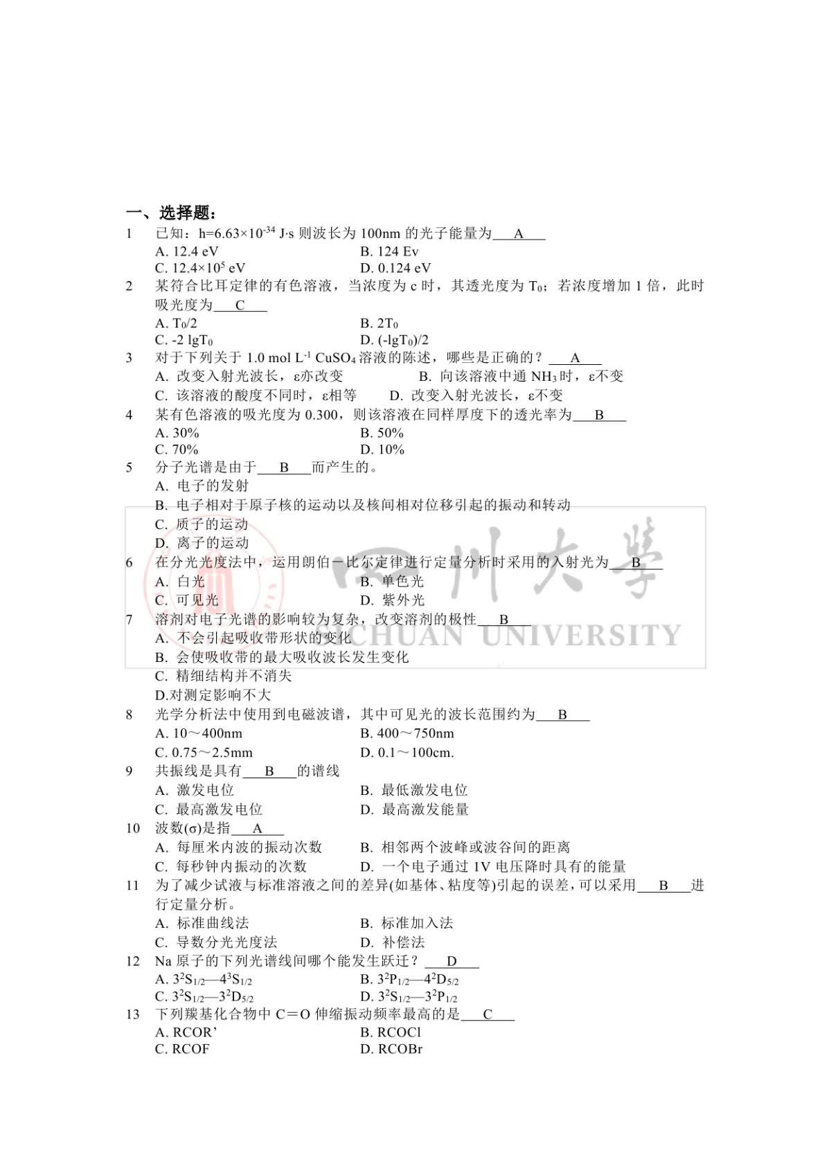 四川大学仪器分析考研复习题