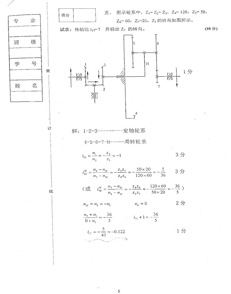 大连交通大学第一学期机械设计基础考试试卷带答案(5)