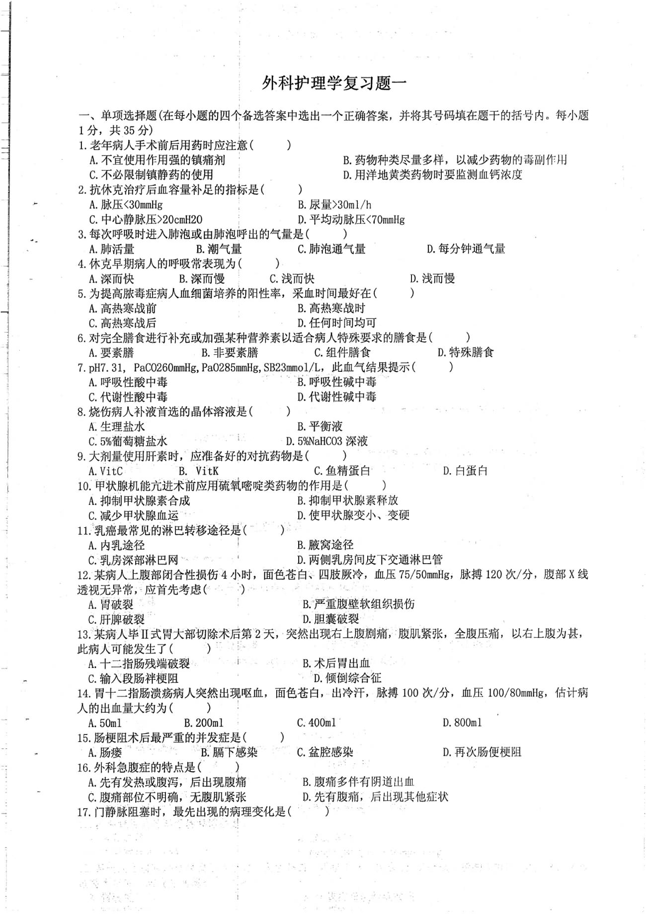 外科护理学考研复习题 37页