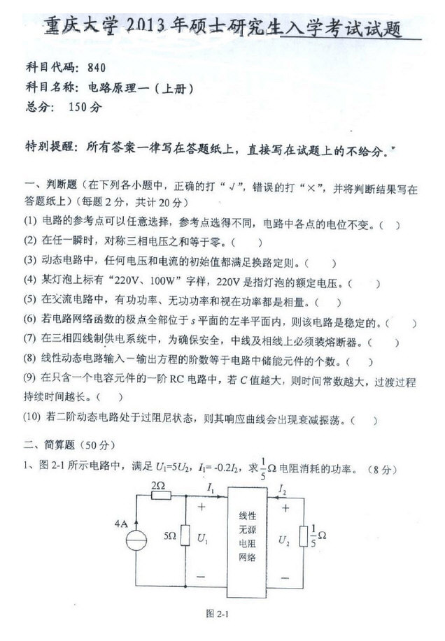 下载地址:http://free.100xuexi.com/Ebook/154034.html说明:本全套资料免费下载,共包括8种电子书。使用全套资料密码激活后,全套资料里的所有电子书、所有题库均可使用。1.历年考研真题汇编 [3D电子书]重庆大学840电路原理一(上册)历年考研真题汇编(含部分答 ...