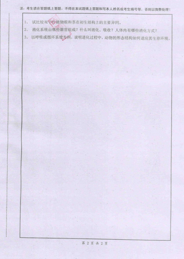 南昌大学2010-2007生态学和普通生物学考研真题(2)