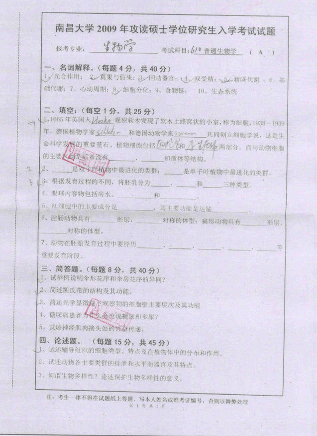 南昌大学2010-2007生态学和普通生物学考研真题(3)