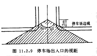 停车场出入口应有良好的通视条件,见图11.2.9,并设置交通标志。