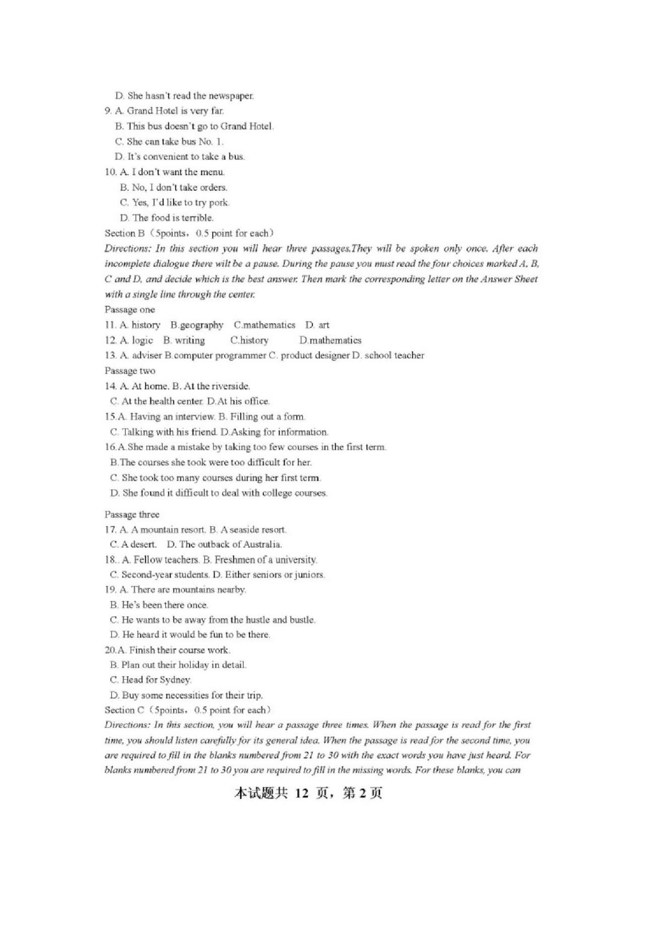 2009年河北大学硕士研究生入学考试复试英语真题(2)