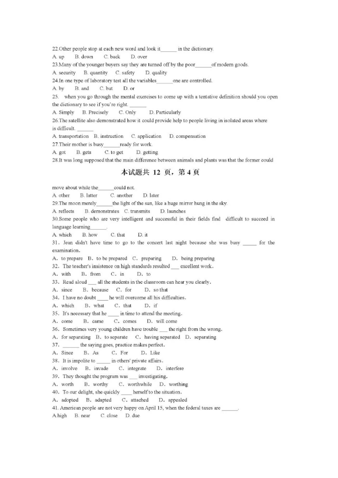 河南大学2011年硕士研究生招生复试英语试卷 英语(1A) I.Directions:Beneath each of the following sentences,there are four choices marked A,B,C,D.Choose the that best completes the sentence.Mark your answer on the ANSWER SHEET.(20points) 1.I worked so late in the office last night that I hardly ...