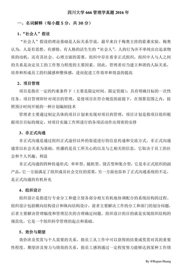 专业课考研资料 本站小编 福瑞考研网 2017-04-072012管理学基础真题回忆