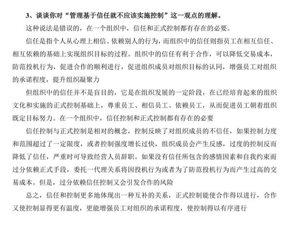 2012管理学基础真题回忆 一、名词解释:基本重复前三年的 二、简答、案例分析和论述(涉及知识点): 有效沟通的障碍; 激励的X理论和Y理论; 领导风格理论; 目标管理的特点; 14年管理学基础 名词解释:概念技能,组织变革,学习型组织,工作流程再造,头脑风暴 简答:全球化,领导权力来源, ...
