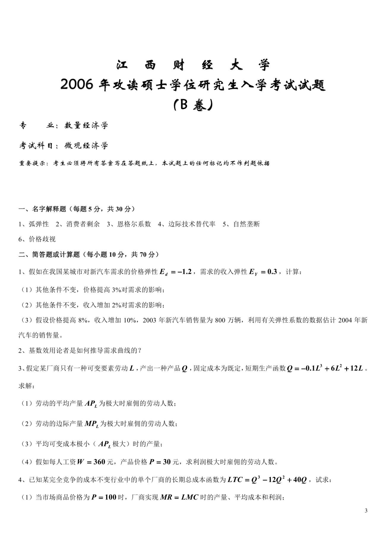 江西财经大学2015-2005微观经济学(数量经济学专业)考研真题(3)