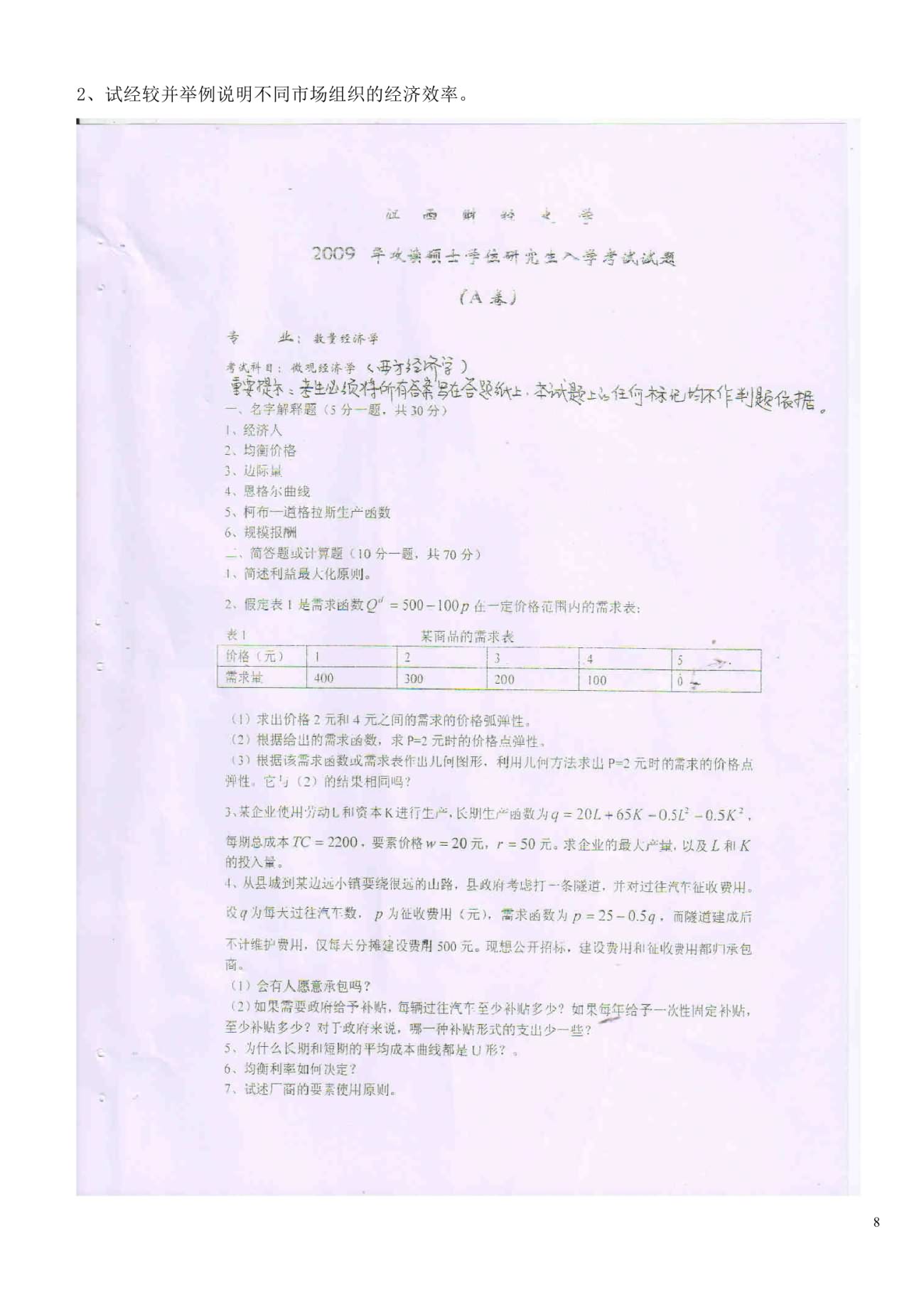 江西财经大学2015-2005微观经济学(数量经济学专业)考研真题(8)