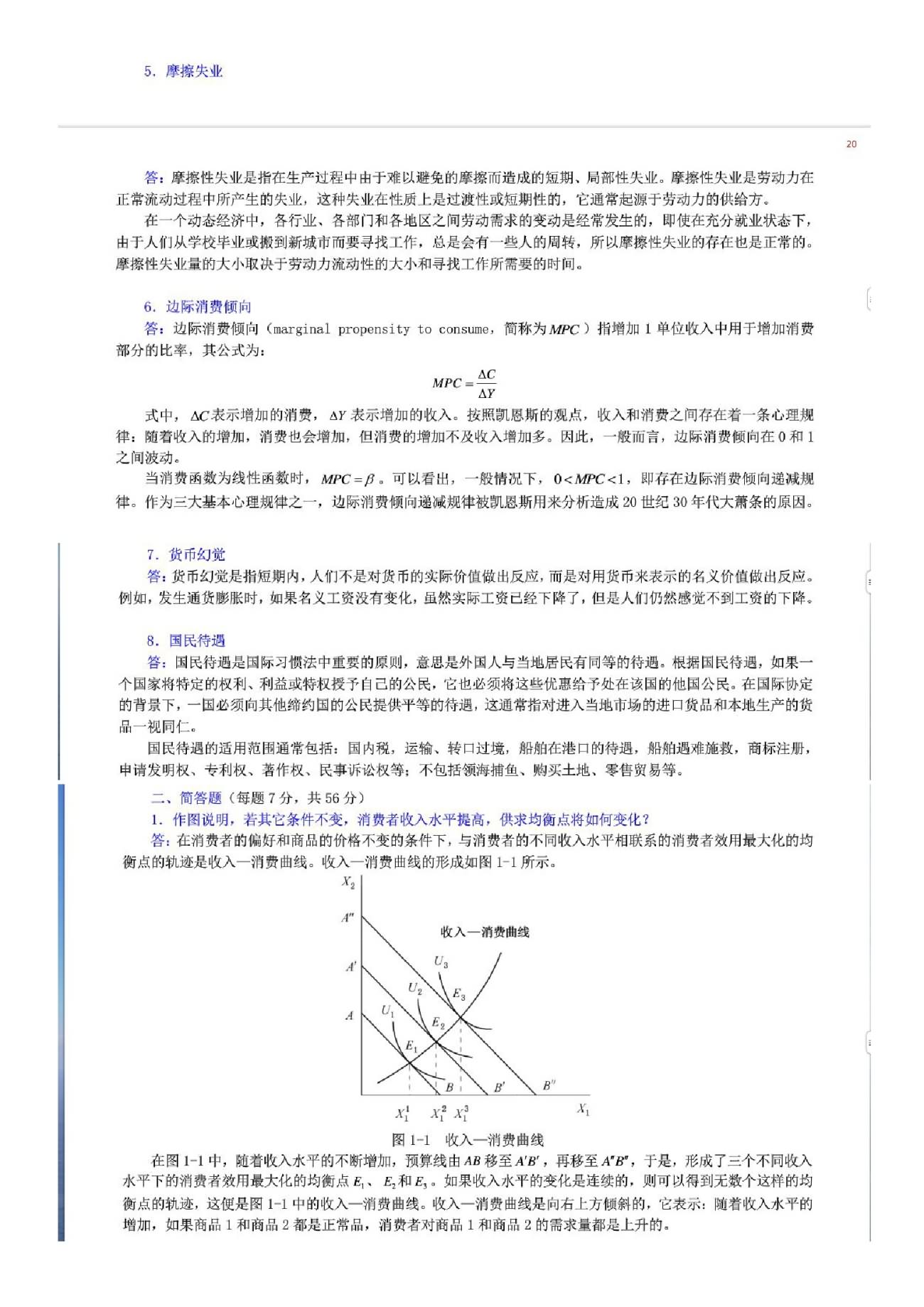 2012年 一、名词辨析(每题4分,共24分) 1、供给定律与供求定理 2、产品边际收益与边际收益产品 3、逆向选择与道德风险 4、GDP折算指数与消费物价指数 5、基础货币与货币乘数 6、现值与终值 二、计算题(每题15分,共30分) 1、假设某人把一天的时间(24小时)用作睡觉(S)、工作(L)和消费(C)三种用途。他在 ...