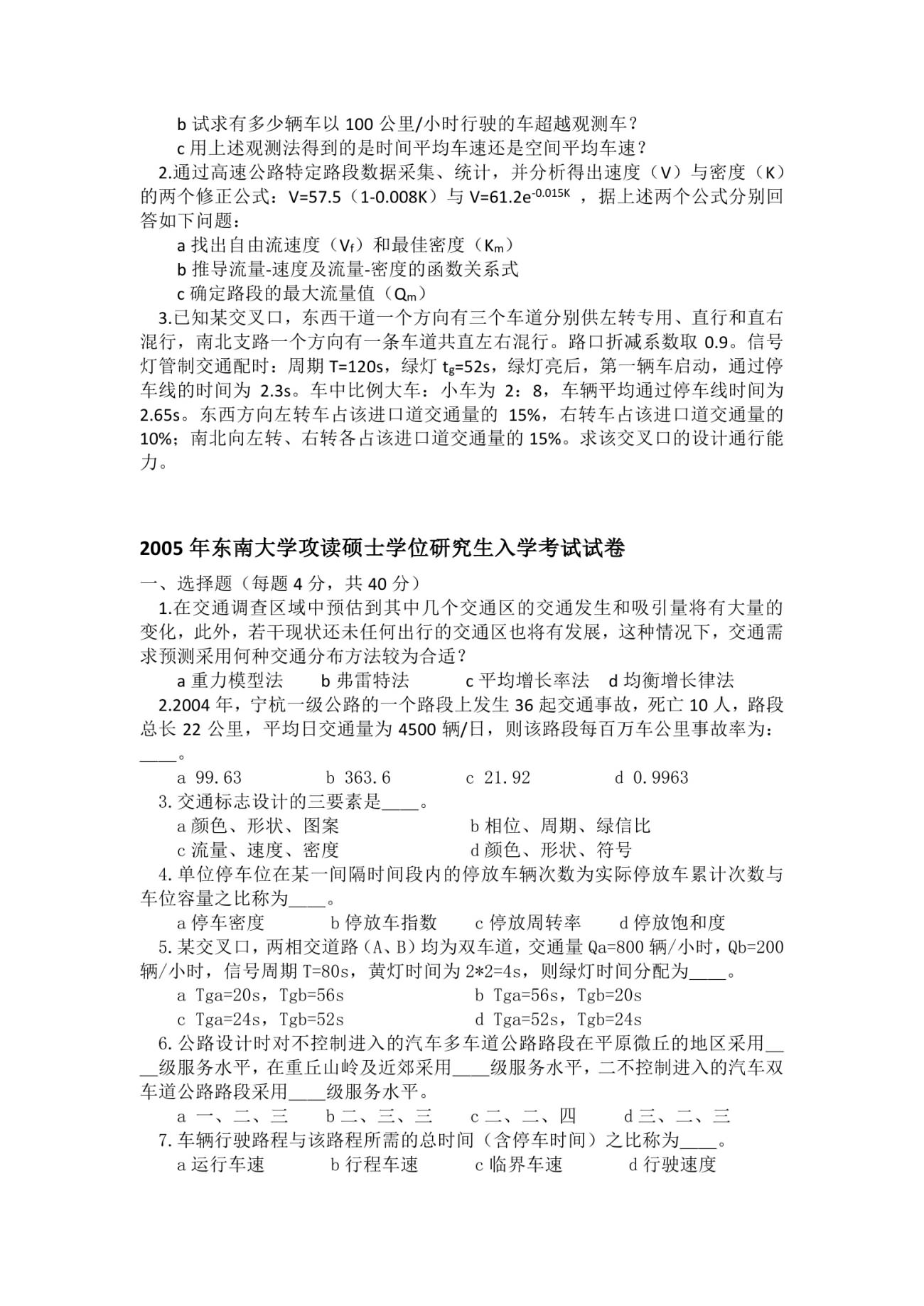 专业课考研资料 本站小编 福瑞考研网 2017-04-27 历年攻读硕士学位研究生入学考试试题试题编号:51试题名称:交通工程学基础1992年:一.在一条长度为24公里的干道起点断面上,于6分钟内观测到汽车100辆通过,设车流是均匀连续的且车速V=20公里/小时,试求流量(q)、时距(ht)、空距(hd)、密度(K)以有第一辆汽车通过此干道所需时间(t)[以分钟或小时计均可]。(15分)二.某路段 ...