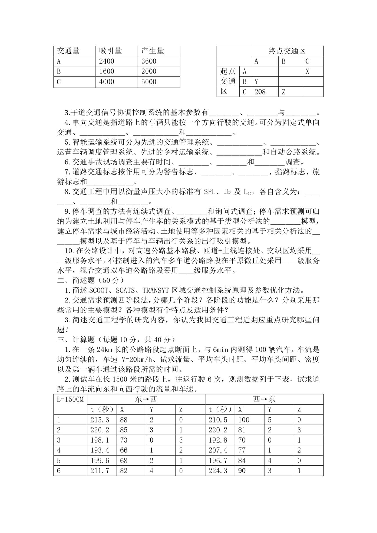 北京工业大学2015年硕士研究生入学考试试题 科目代码: 849 科目名称: 交通工程 所有答案必须做在答题纸上,做在试题纸上无效 一、名词解释(共30分,每题3分) 1、临界接受间隙 2、车头时距 3、交通事故 4、高峰小时交通量 5、区间车速 6、OD调查 7、交通延误 8、相位差 9、绿 ...